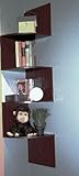 Wonderful spacious corner shelving unit. These 4 curved shelves are beautifully placed to utilize any corner space in the home for your shelving needs. The uprights are predrilled for the screws to attach to the wall. The hardware comes with drywall anchors so all you need is a drill, drill bit, and screwdriver to fasten the unit to the wall. Constructed of Composite Board and highly durable PVC laminate. Clean with a dry non abrasive cloth. Assembly required.