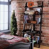 Features: Ladder Bookcase constructed of hardwood solids, maple, ash veneers and select hardwoods Black finish Five shelves Ready to assemble Specifications: Overall Dimensions: 76" H x 34" W x 19" D Weight: 71 lbs